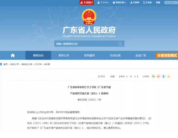 该实施方案自2022年1月31日起实施,有效期3年。为强化督导考核,广东省农业农村厅将能繁母猪存栏量、规模猪场(户)保有量指标列入省对各市的乡村振兴实绩考核和“菜篮子”市长负责制考核。